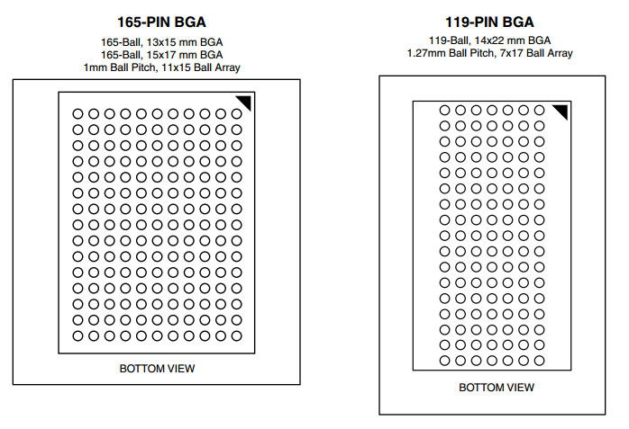 | 72Mb | 2Mx36 | IS64LPS204836B | 3.3V | 2.5/3.3V | 166 | 3.5 | QFP(100),BGA(119),BGA(165) |