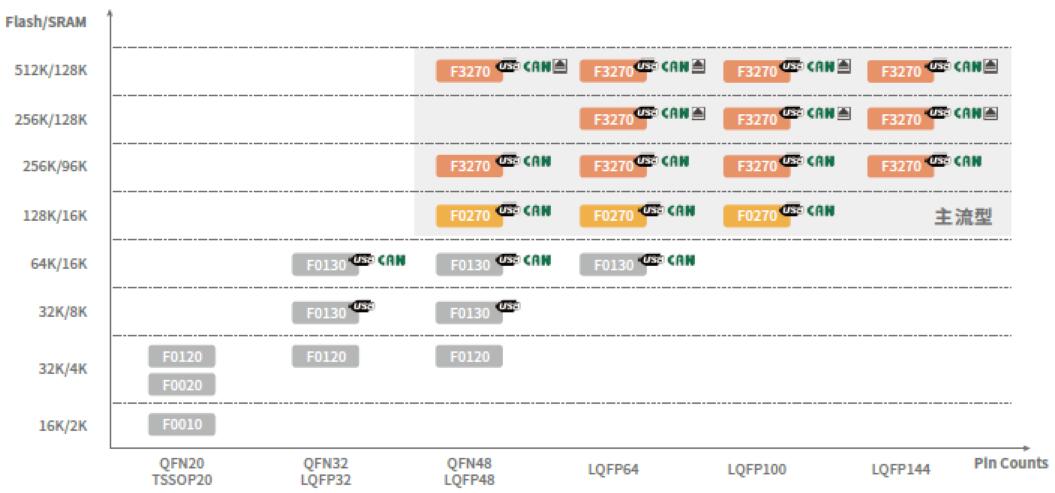 MM32F主流型基于96MHz Arm Cortex-M0和120MHz Arm Cortex-M3內核。